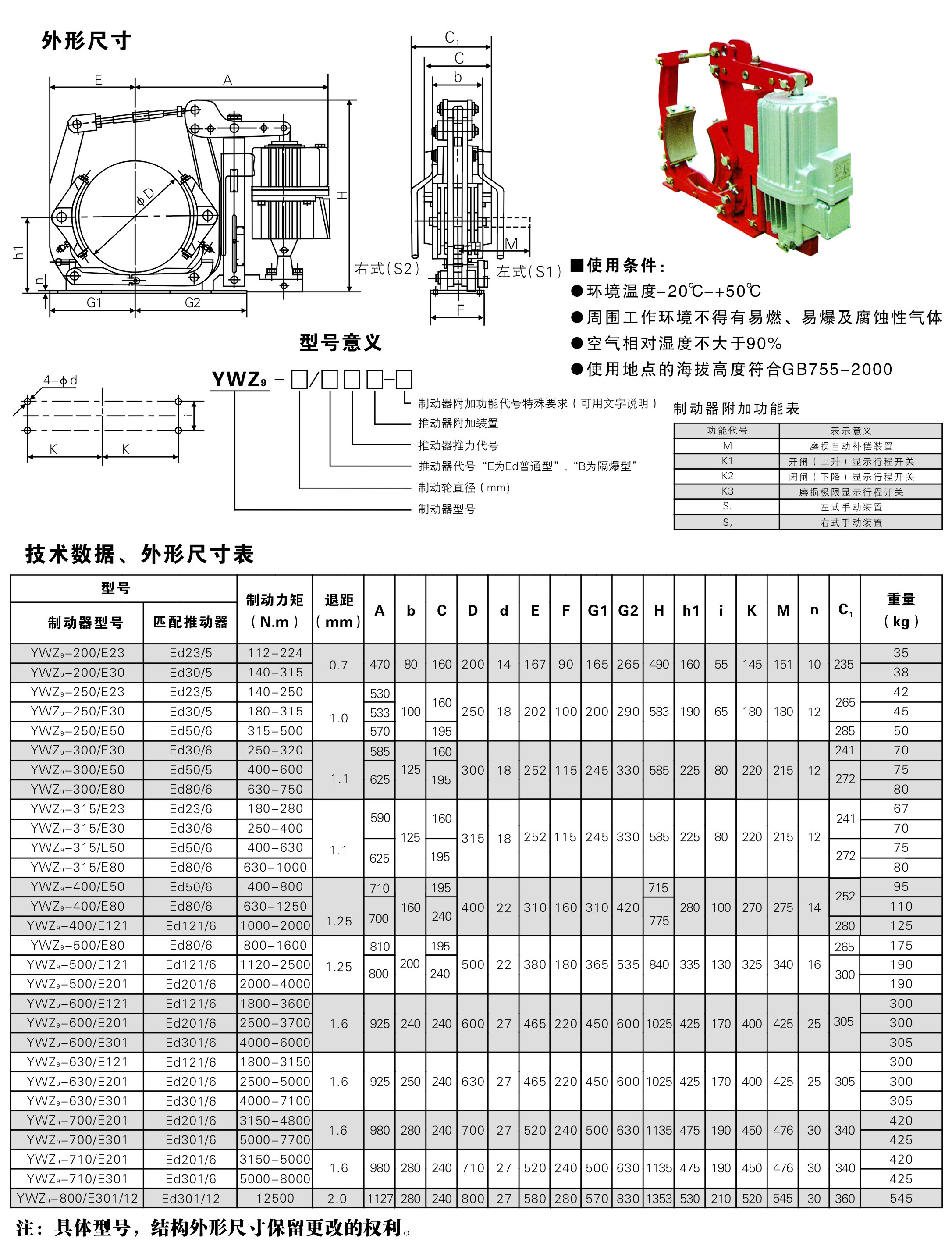 YWZ9電力液壓塊式制動器主要用于起重、運輸、冶金、礦山、港口、建筑機械驅動裝置的機械制動,具有制動平穩,安全可靠、維修方便、耗電少、壽命長、無噪音等優點。